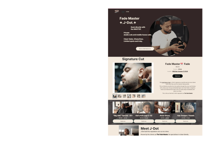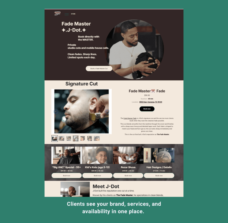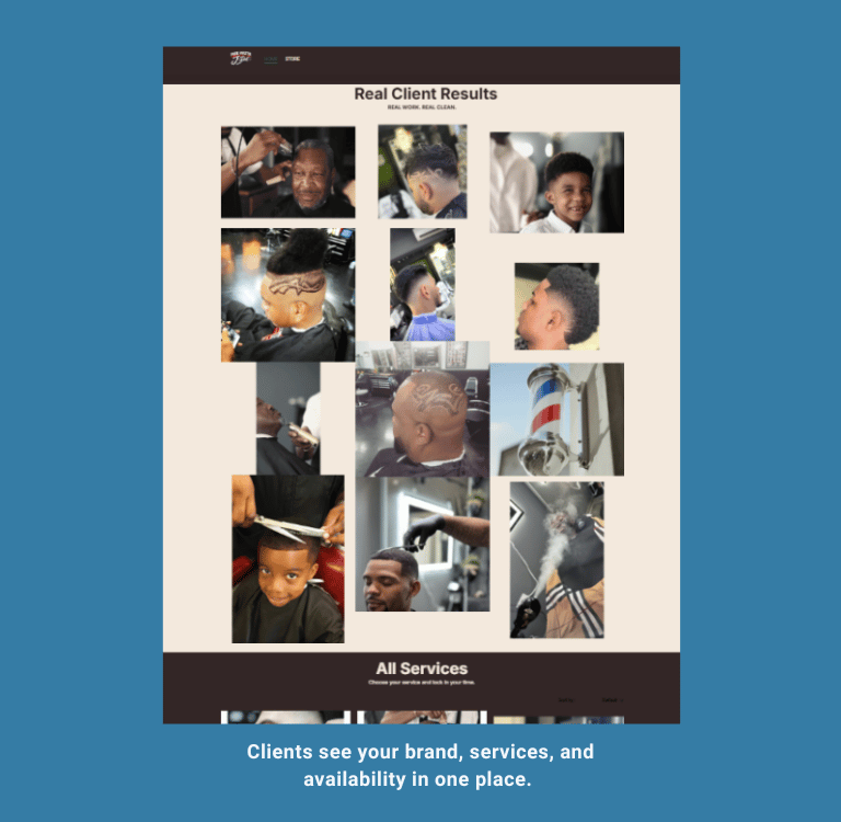 Your own branded website where clients explore services, see your work, and book appointments directly.
