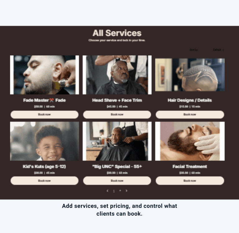 Add services, adjust pricing, and structure your offerings the way you want clients to book.