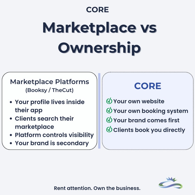 CORE replaces the patchwork most providers rely on social posts, marketplace listings, and DM scheduling with one structured system.