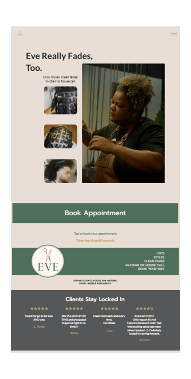 QuickPages creates a single-page booking site where clients can: