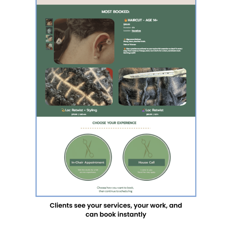 Built for how clients actually browse and book.